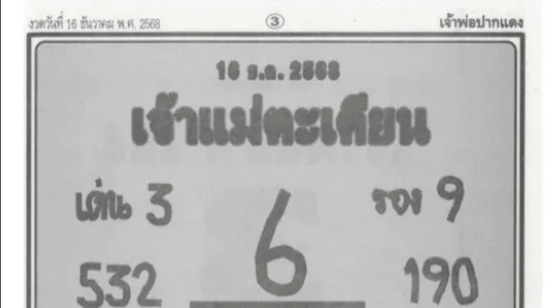 สายมู สายลอตเตอรี่เตรียมสมุดจดให้พร้อม งวดวันที่ 16 ธันวาคม 2568 นี้ เลขเด็ด จากสิ่งศักดิ์สิทธิ์ที่คอหวยทั่วประเทศให้ความศรัทธาอย่าง เจ้าแม่ตะเคียน เปิดแนวทางมาแล้วแบบเน้นๆ จัดเต็มทั้งเลขเด่น เลขรอง เลข 2 ตัว และเลข 3 ตัว ใครยังไม่มีเลขในใจ หรือเพิ่งพลาดรางวัลจากงวดก่อน แวะมารวมตัวกันตรงนี้ allruay รวบรวมแนวทางให้แบบครบ ๆ เอาไปใช้เป็นตัวช่วยวิเคราะห์ก่อนตัดสินใจซื้อสลากกินแบ่งรัฐบาลได้อย่างมั่นใจยิ่งขึ้น