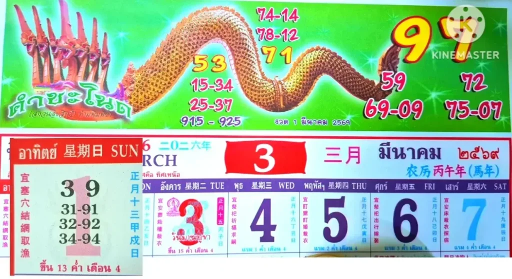 เลขเด็ดปฏิทินคำชะโนด งวดวันที่ 01/03/69