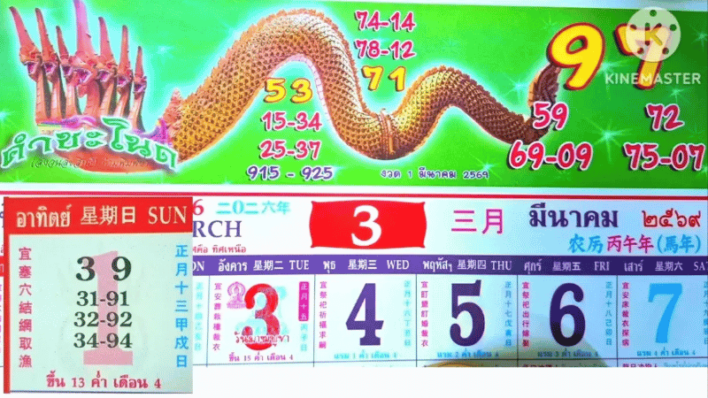 เลขเด็ดปฏิทินคำชะโนด งวดวันที่ 01/03/69